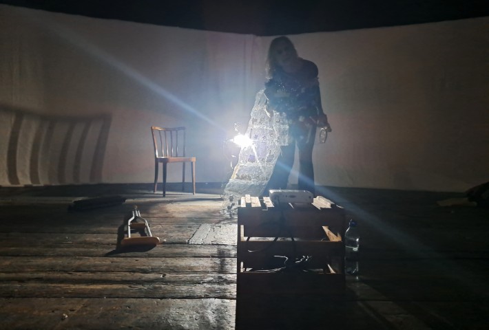 Unsere Performance macht diesen Untergang erfahrbar. Wir interpretieren Nietzsches letzte Texte mit modernsten künstlerisch-technischen Mitteln: Intensiver Surround-Sound und immersive Projektionen ergänzen schauspielerische Darbietungen.“ (Text _ExMachinisMusicae)