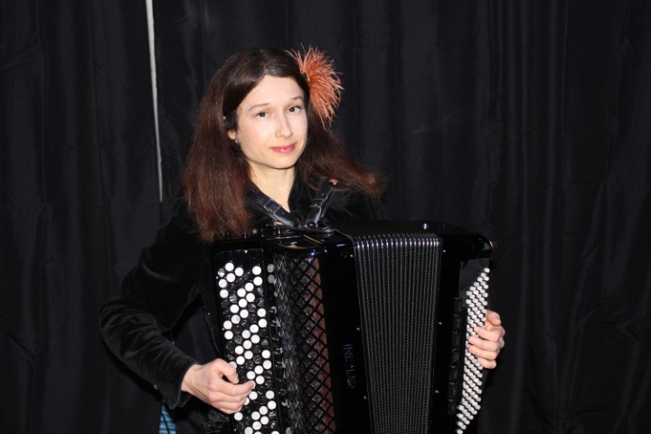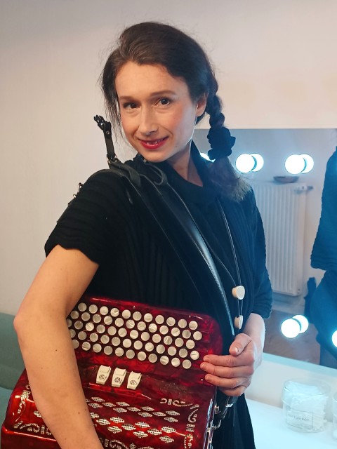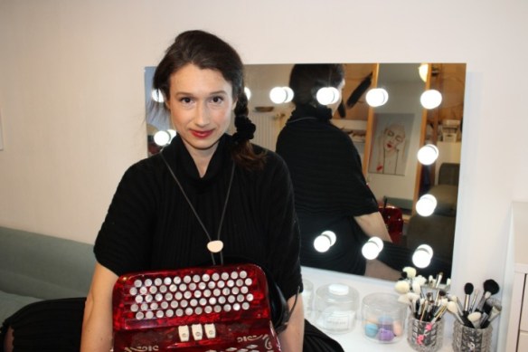 Akkordeonistin bei der Nestroy-Produktion „Der Färber und sein Zwillingsbruder“ im Volkstheater Wien in der Spielzeit 2011/12.