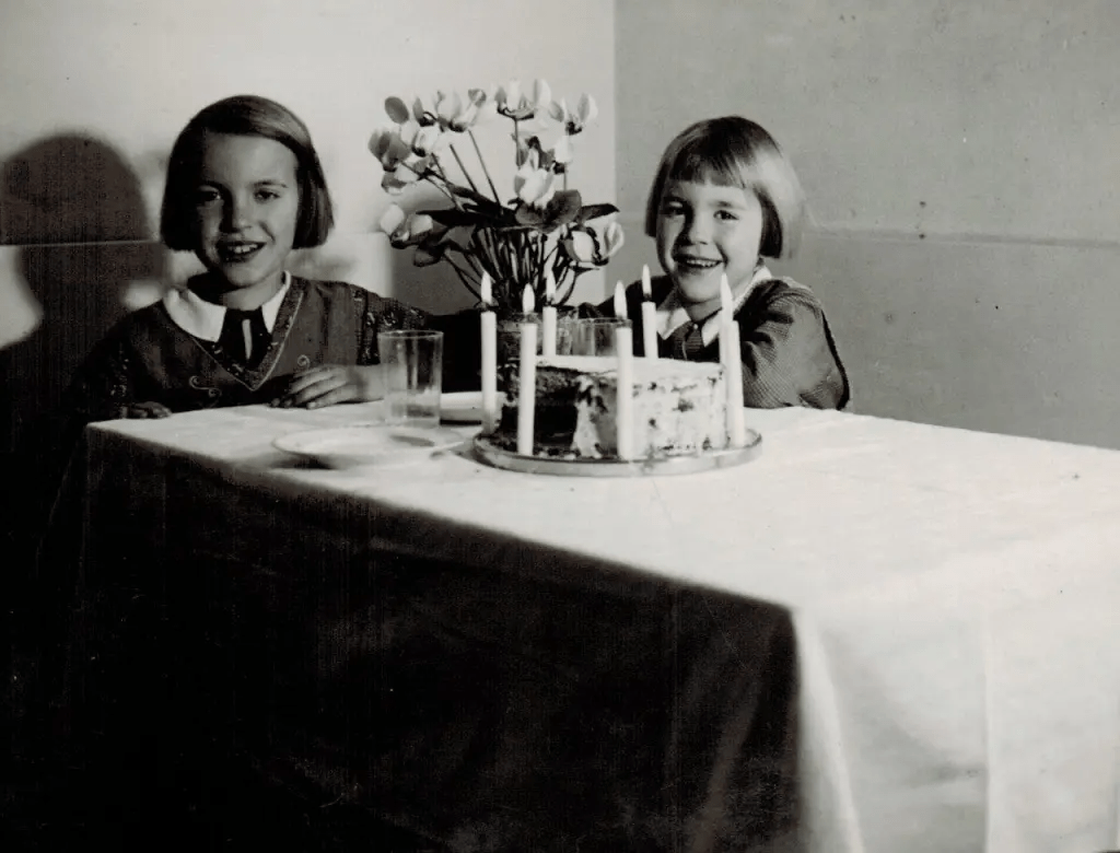 Fröhlicher Geburtstag von Isolde im Hause Bachmann _Klagenfurt/Henselstr. _ Ingeborg Bachmann (links) und ihre jüngere Schwester Isolde Moser (geb.Bachmann *1928) _ (Familienarchiv Bachmann)