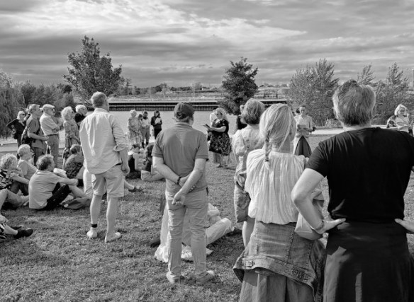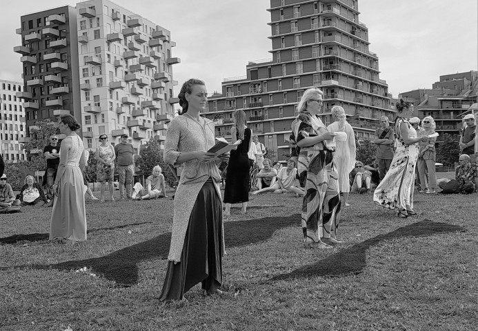 Inmitten von außergewöhnlicher Großstadt-Natur wird das zahlreiche Publikum zu einer Sprach- und Tanzperformance eingeladen, die in eindringlichen Wort-, Musik- und Bewegungswellen die Texte öffnet und Literatur wie höchste Sprech-, Musik- und Bewegungskunst bietet, die in dieser Form und Konzeption einzigartig ist, rundum begeisterte und mit langanhaltendem Applaus belohnt wurde!