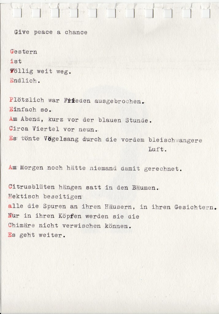 GIVE PEACE A CHANCE _ Akrostichon for peace